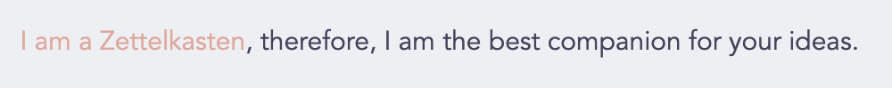 [[Identity of the Zettelkasten|I am a Zettelkasten]], therefore, I am the best companion for your ideas.